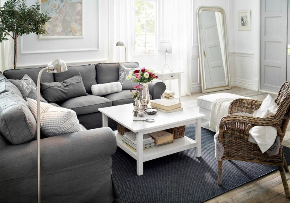 สำหรับโทนสีเย็นสามารถนำมาประกอบกับทิศทางสแกนดิเนเวียน - เฉดสีเทา หนึ่งในวัสดุที่นิยมมากที่สุดคือ jacquard