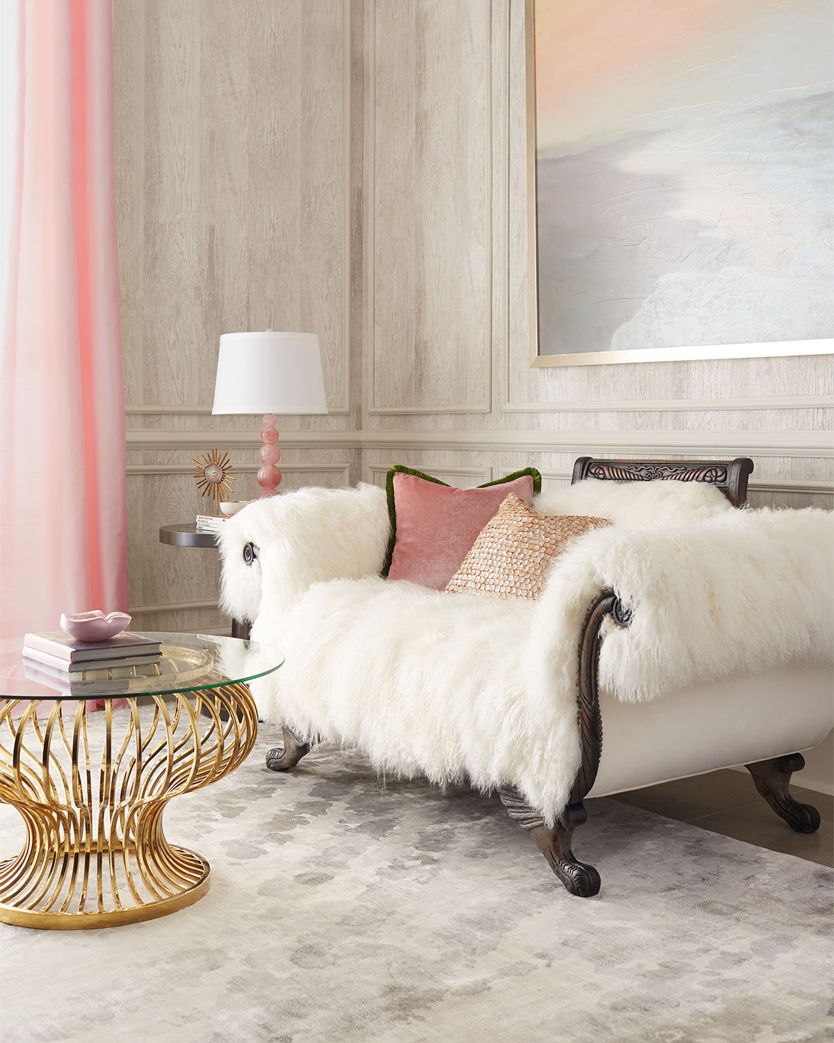 สำหรับการตกแต่งภายในในรูปแบบของ Glamour นั้นขนคลุมของเฉดสีที่ละเอียดอ่อนหรือตัดกันจะเหมาะกับความหรูหรา