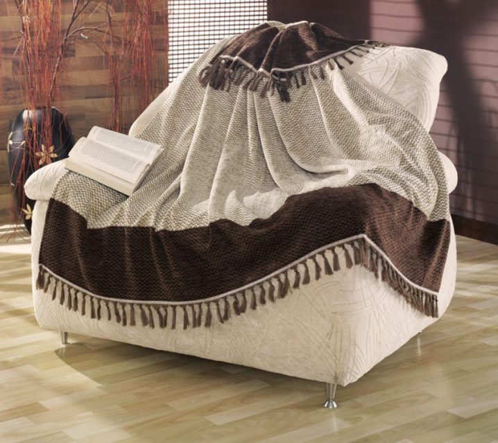 - สากล. รูปทรงของวัสดุนั้นชวนให้นึกถึงผ้าขนหนูรูปสี่เหลี่ยมผืนผ้าซึ่งทับลงบนโซฟาอย่างเรียบง่าย มันเหมาะกับทั้งโซฟาและเก้าอี้เท้าแขน