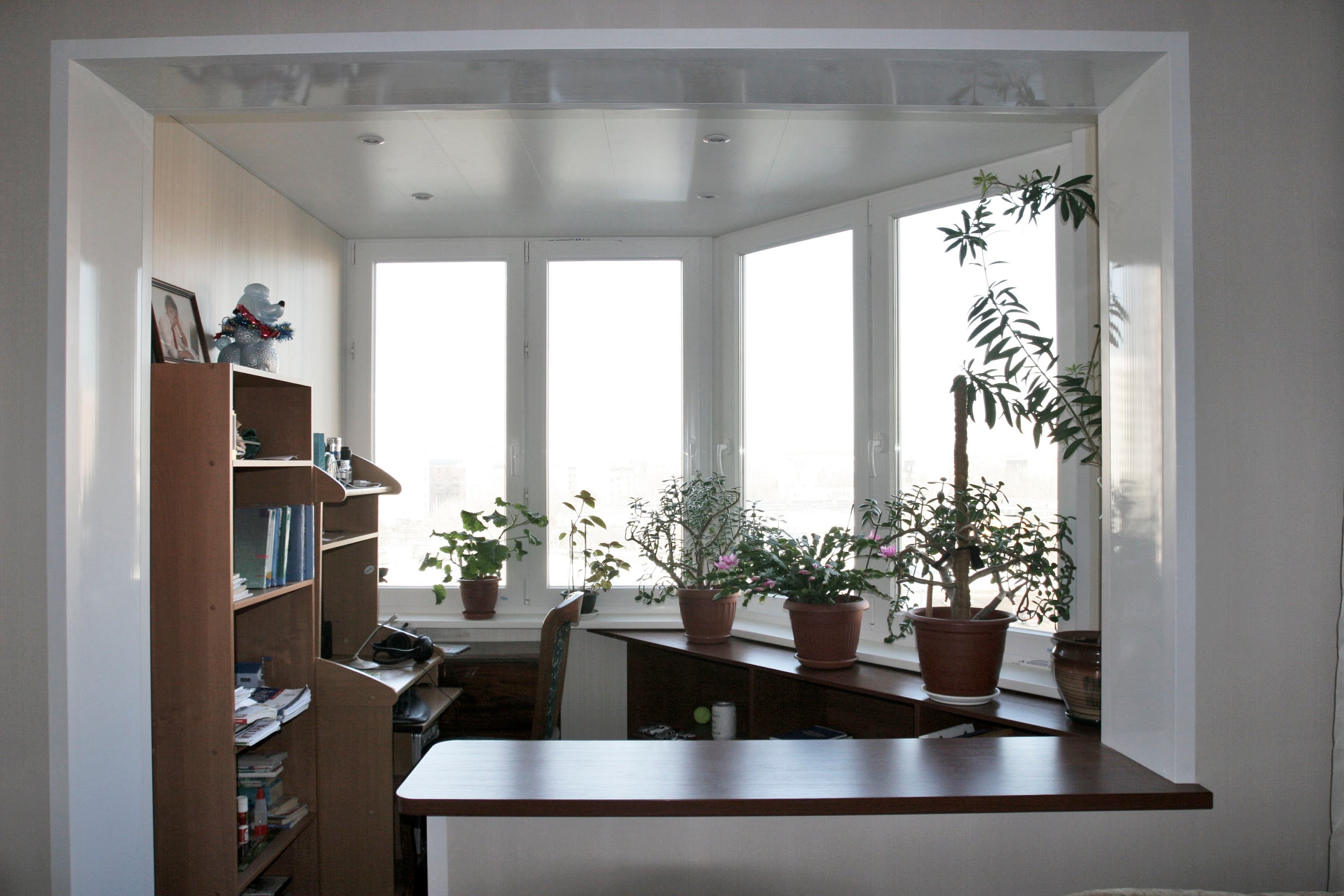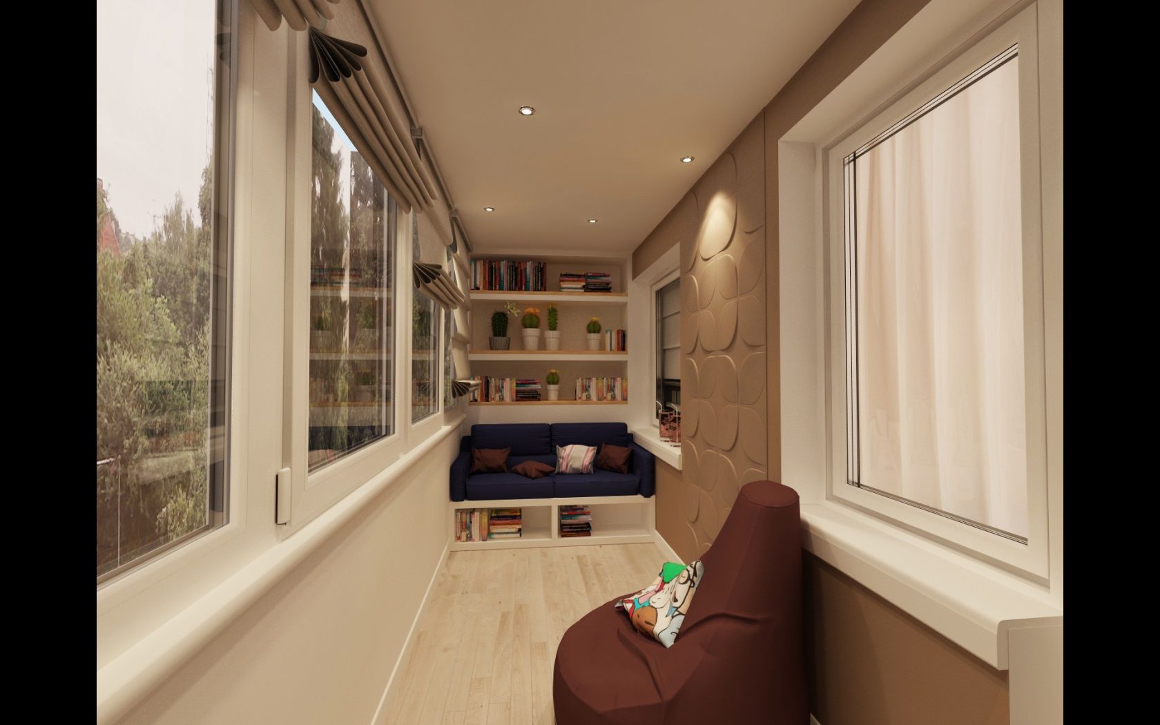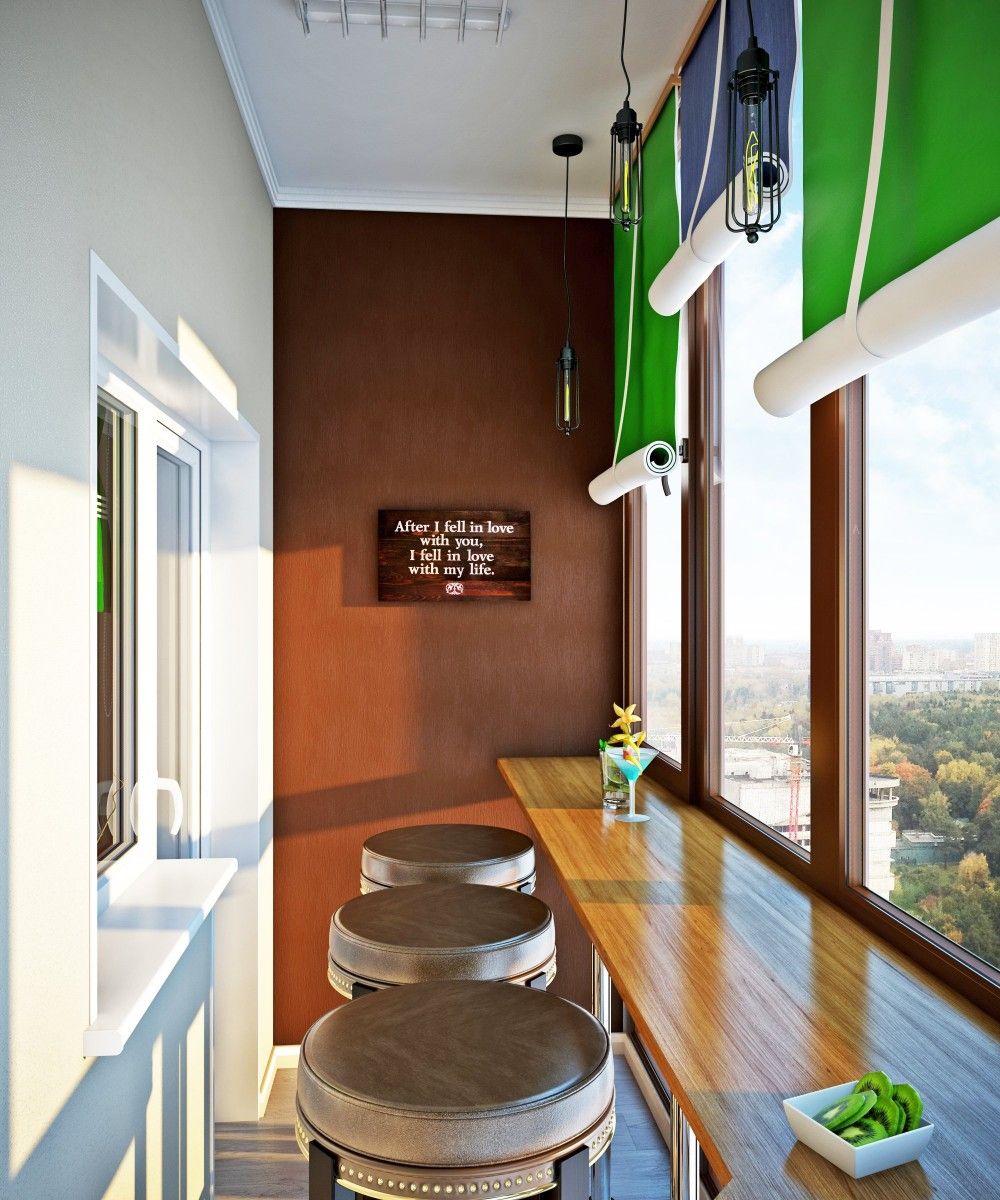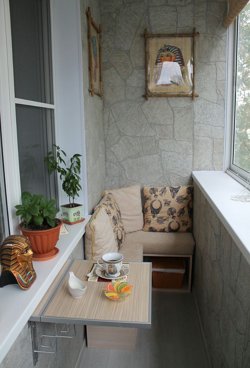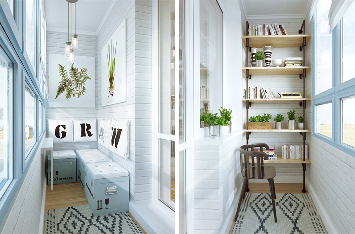 ด้วยรูปแบบที่อบอุ่นคุณสามารถเปลี่ยนระเบียงหรือชานซึ่งคุณใช้เป็นตู้เสื้อผ้าสำหรับทิ้งสิ่งที่ไม่จำเป็นทั้งหมดไปยังห้องทำงานที่มีอุปกรณ์ครบครัน