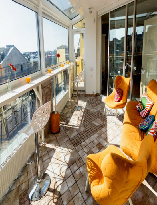 - ด้วยระเบียงที่อบอุ่นหรือระเบียงจะสะดวกสบายโดยไม่คำนึงถึงฤดูกาลแม้ในฤดูหนาวที่รุนแรง