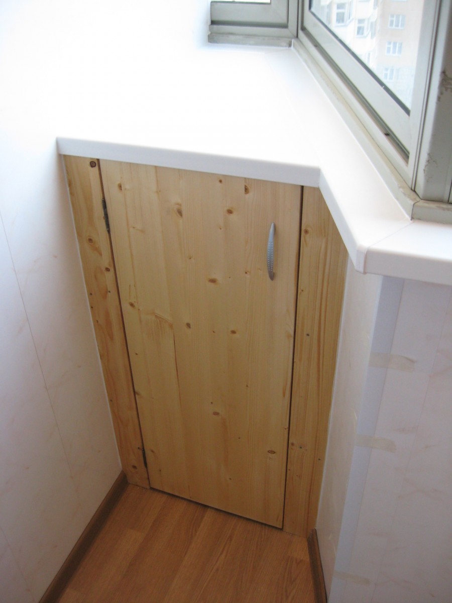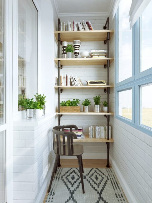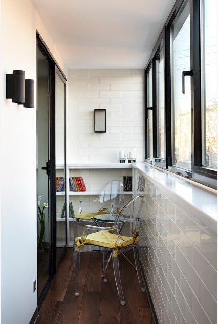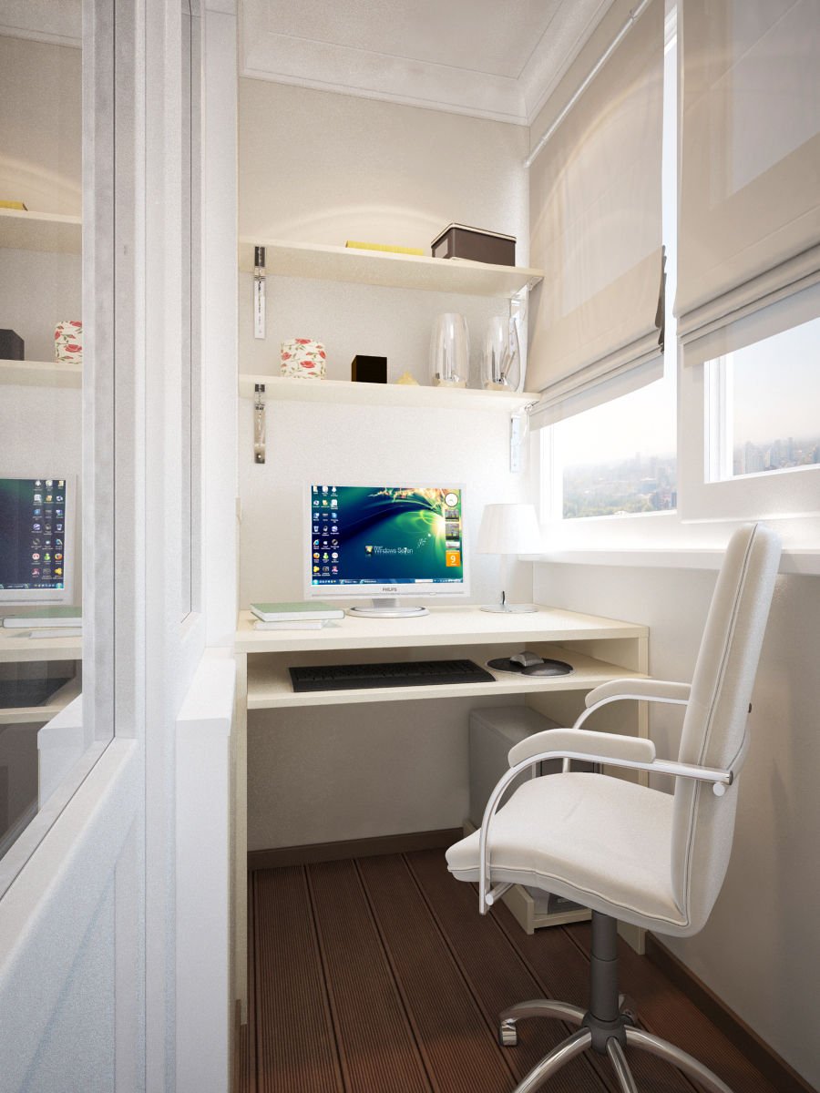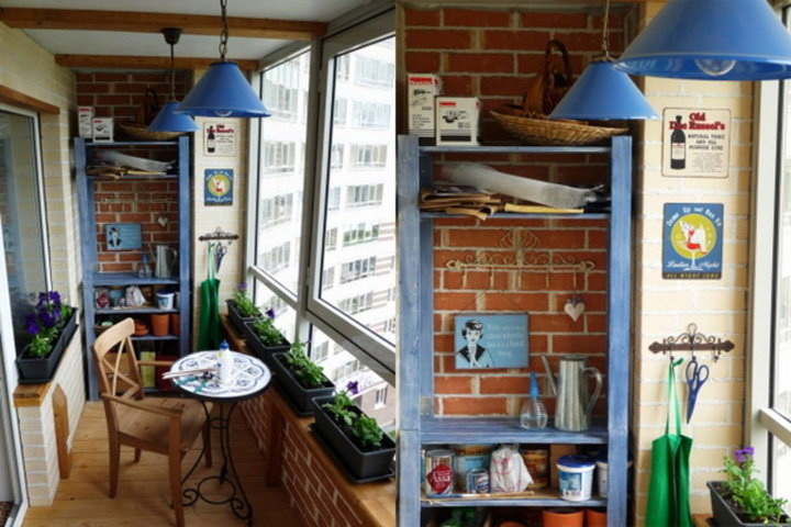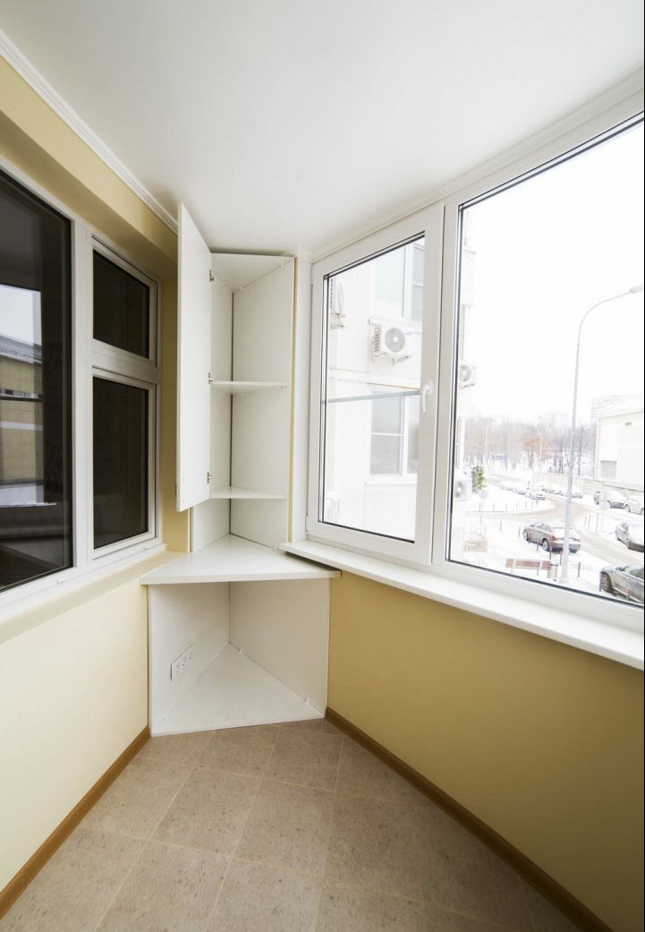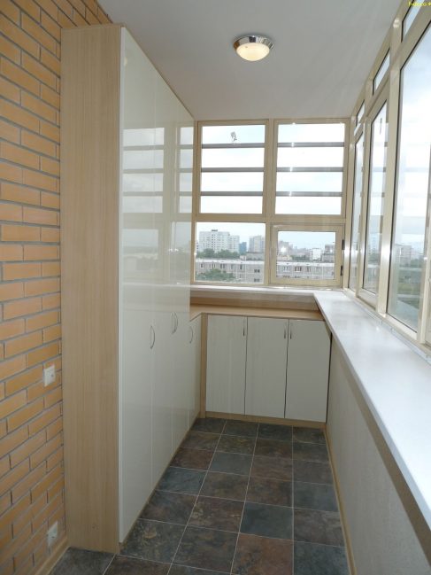 ตู้ติดตั้งจำนวนมากบนระเบียงเพื่อเก็บของต่าง ๆ การตัดสินใจที่จะประหยัดพื้นที่ควรเป็นที่สนใจสำหรับผู้ที่อาศัยอยู่ในอพาร์ทเมนต์ขนาดเล็ก