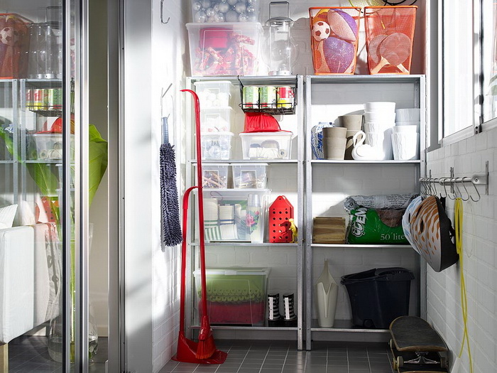 - ระเบียงสามารถใช้ในการจัดเก็บสิ่งต่าง ๆ รวมถึงเครื่องมือก่อสร้างวัสดุดังนั้นจึงสะดวกเมื่อความสูงความกว้างของชั้นวางสามารถปรับได้