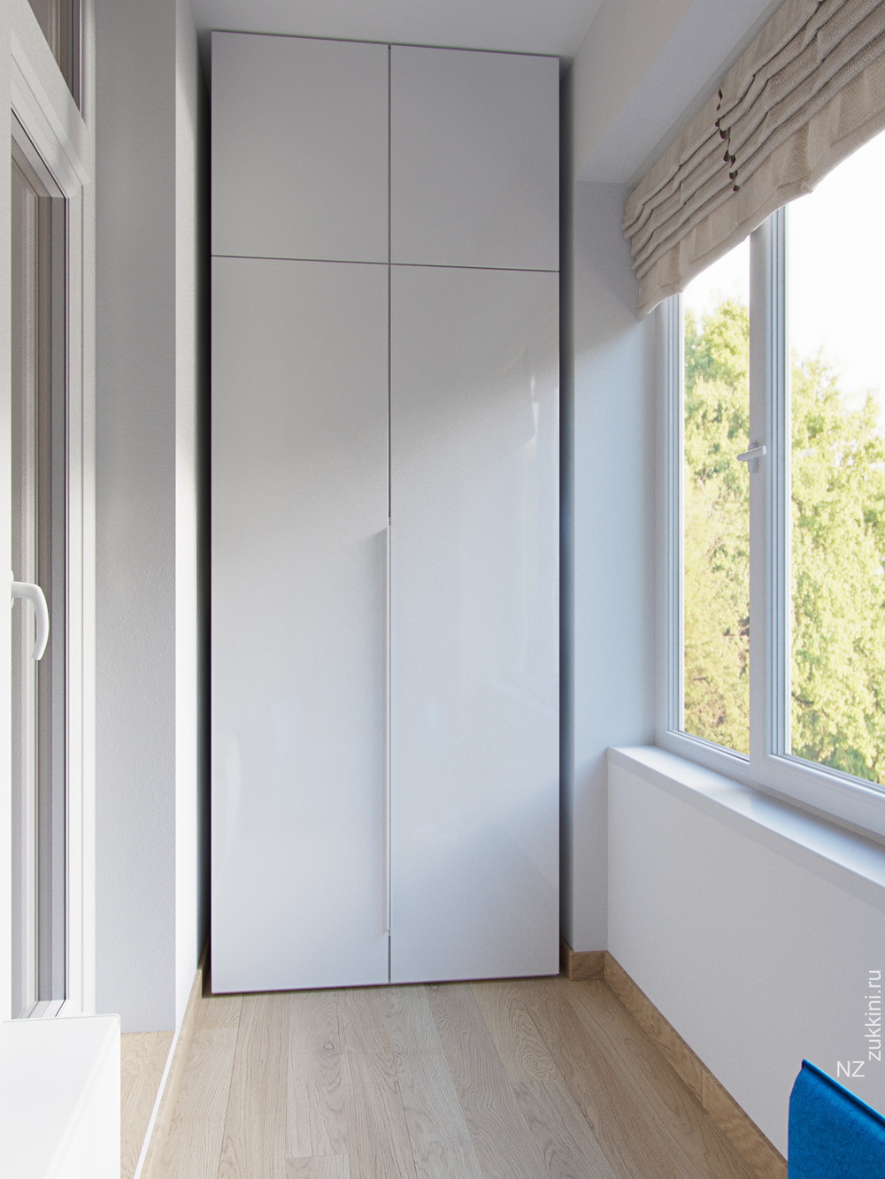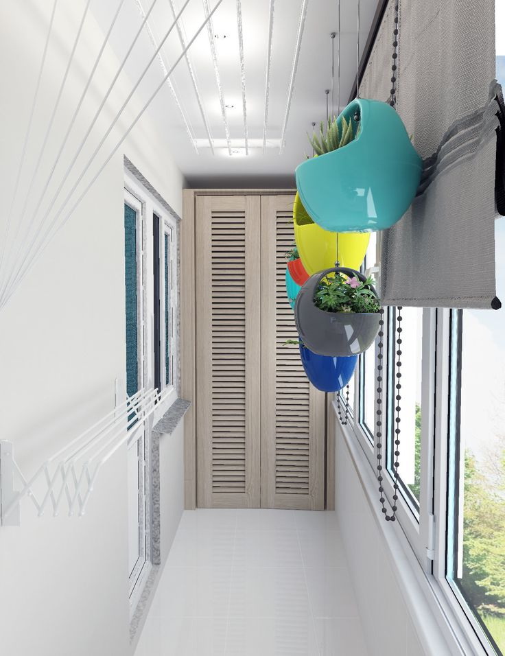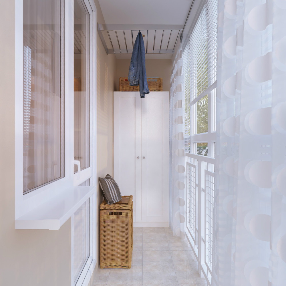 หลายคนปล่อยให้ระเบียงว่างเปล่า เนื่องจากพื้นที่ขนาดเล็กไม่สามารถติดตั้งโครงสร้างแบบมิติได้ แต่ถ้าอพาร์ทเมนท์มีพื้นที่ที่ไม่สำคัญและทุก ๆ เซ็นติเมตรถูกครอบครองด้วยสิ่งที่จำเป็นและเฟอร์นิเจอร์ระเบียงจะกลายเป็นที่ทิ้งขยะที่ถังเก็บขยะสิ่งต่าง ๆ ในกล่องถูกนำขวดเปล่า ในกรณีนี้ตู้เสื้อผ้าบนระเบียงเป็นการตัดสินใจที่ถูกต้อง