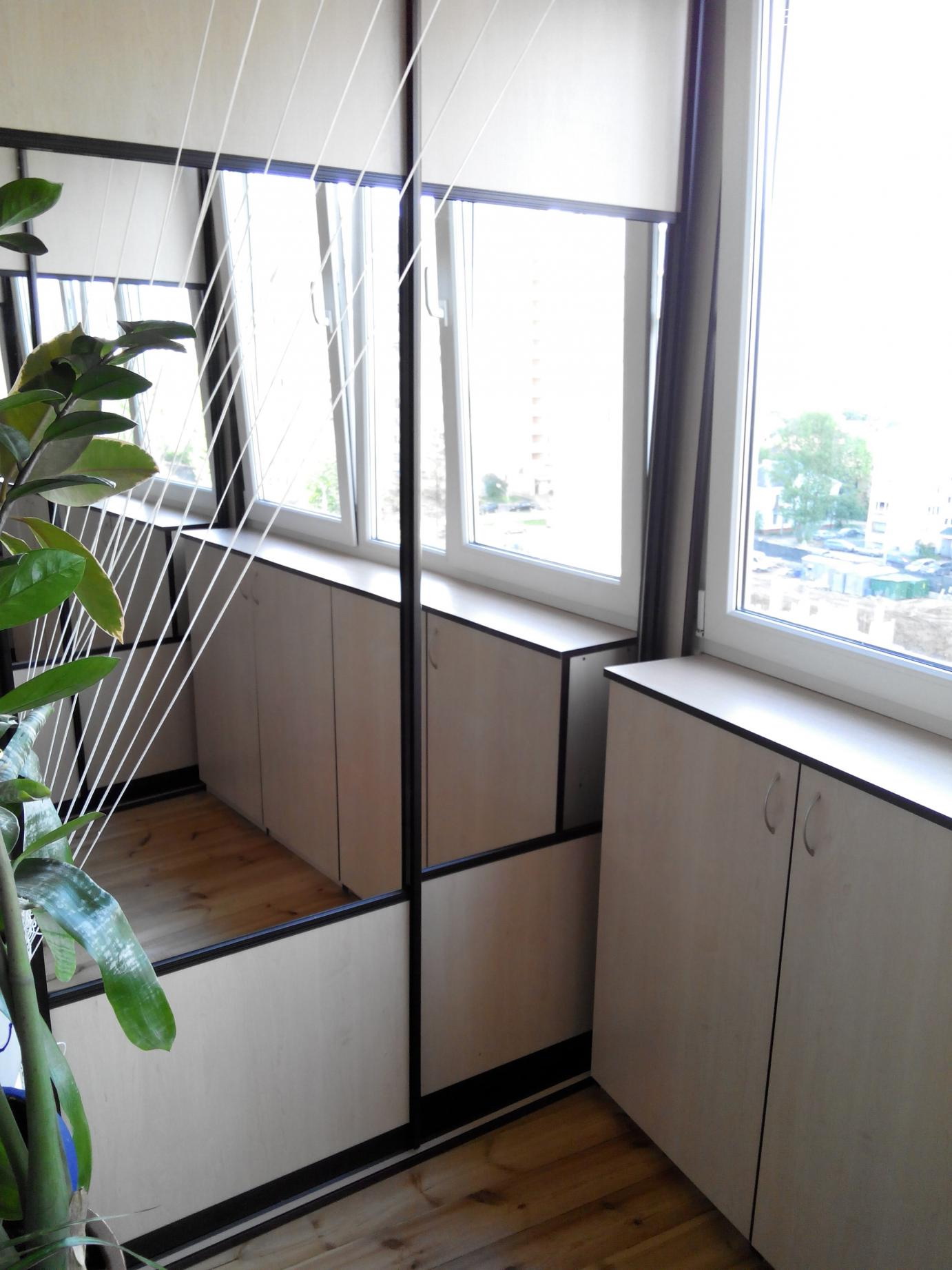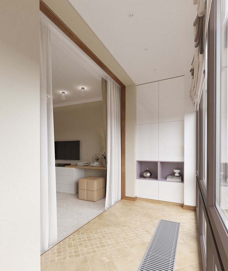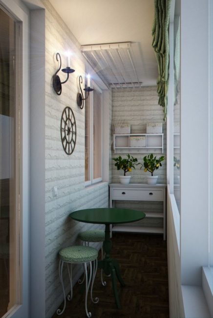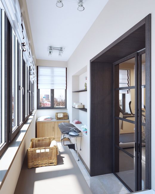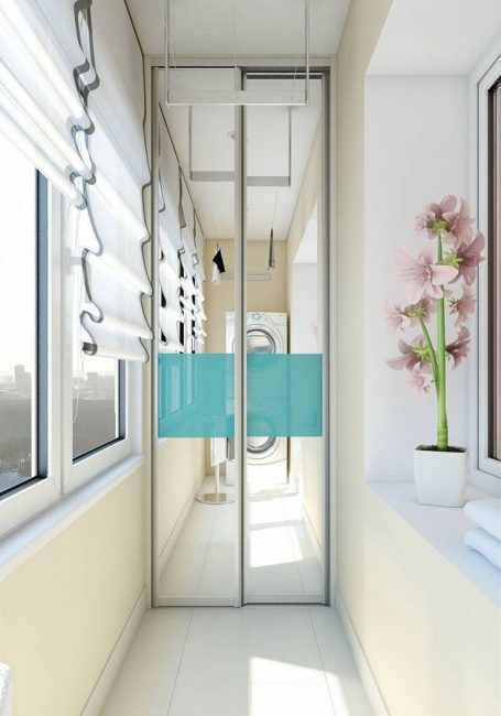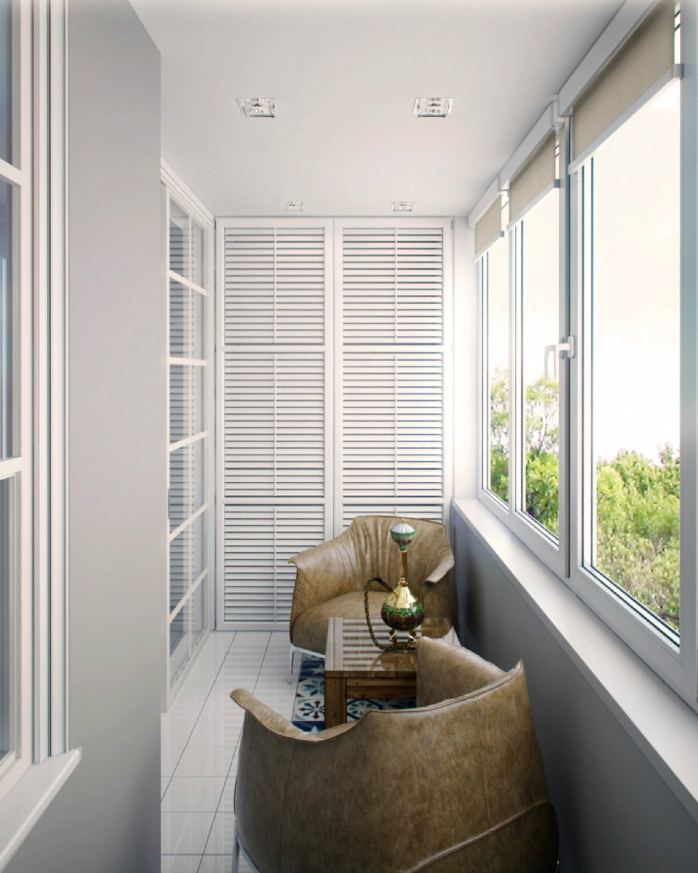 หลายคนปล่อยให้ระเบียงว่างเปล่า เนื่องจากพื้นที่ขนาดเล็กไม่สามารถติดตั้งโครงสร้างแบบมิติได้ แต่ถ้าอพาร์ทเมนท์มีพื้นที่ที่ไม่สำคัญและทุก ๆ เซ็นติเมตรถูกครอบครองด้วยสิ่งที่จำเป็นและเฟอร์นิเจอร์ระเบียงจะกลายเป็นที่ทิ้งขยะที่ถังเก็บขยะสิ่งต่าง ๆ ในกล่องถูกนำขวดเปล่า ในกรณีนี้ตู้เสื้อผ้าบนระเบียงเป็นการตัดสินใจที่ถูกต้อง