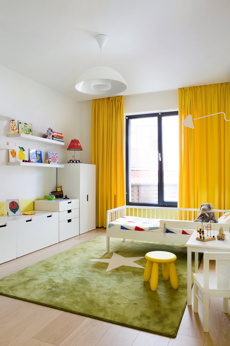 ผู้เชี่ยวชาญบอกว่าสีนี้ประสบความสำเร็จมากที่สุดในการออกแบบห้องของเด็ก การเชื่อมโยงแรกกับสีเหลืองในเกือบทุกคนคือดวงอาทิตย์ ดังนั้นเพื่อให้ห้องของบุตรของท่านสดใสมีแดดและสบาย ๆ ให้ซื้อสีเหลือง นักจิตวิทยายังบอกด้วยว่าเฉดสีนี้มีส่วนช่วยในการทำงานของจิตใจดังนั้นเพื่อความสำเร็จของเด็กตั้งแต่อายุยังน้อยคุณสามารถล้อมรอบเขาด้วยสีเหลือง