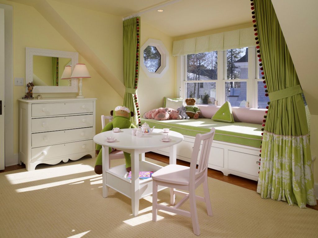 ถ้าเราพูดถึงสีที่เหมาะสมสำหรับเด็กที่ไม่สงบและผู้ที่ทุกข์ทรมานจากความบกพร่องทางจิตวิทยามันเป็นสีเขียว มันเกี่ยวข้องกับธรรมชาติซึ่งเกี่ยวข้องกับความสงบเงียบสงบผ่อนคลาย เมื่อใดหากไม่ได้อยู่ในวัยเด็กคุณไม่สามารถคิดถึงอะไรได้เลยรู้สึกดีมาก? ดังนั้นผ้าม่านสีเขียวในเรือนเพาะชำแสดงให้เห็นถึงการดูแลของผู้ปกครองเกี่ยวกับความต้องการทางด้านจิตใจของเด็ก