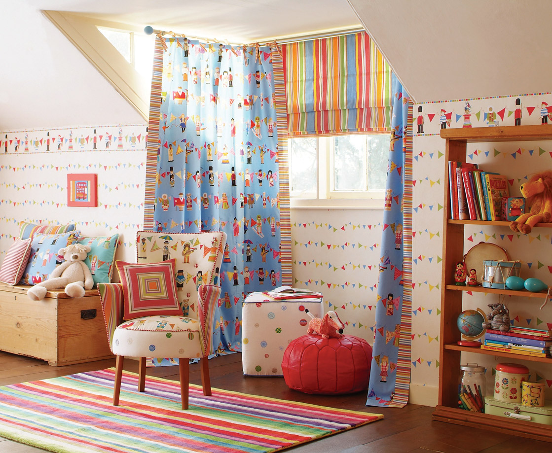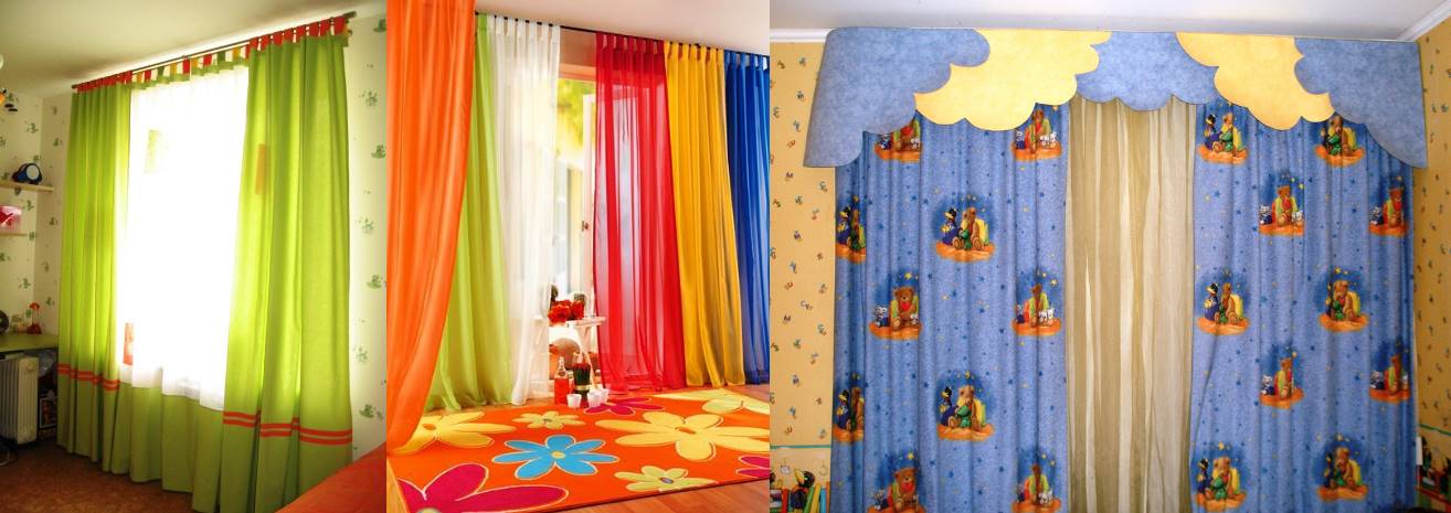 บางครั้งผู้ปกครองมีส่วนร่วมในการซ่อมแซมห้องของเด็กตัดสินใจที่จะไม่แขวนผ้าม่านเพื่อที่จะได้ไม่เกะกะห้อง โดยทั่วไปคนอื่นคิดว่าพวกเขาเป็น "ผู้สะสมฝุ่น" ซึ่งสามารถได้รับอันตรายเท่านั้น ผ้าม่านเป็นองค์ประกอบที่ขาดไม่ได้ของห้องเด็กซึ่งมีความสำคัญต่อทั้งความสวยงามของห้องและการใช้งานจริง: