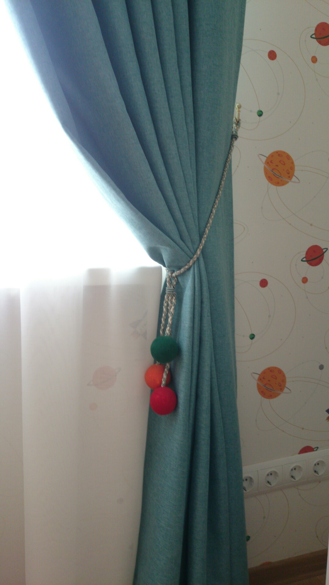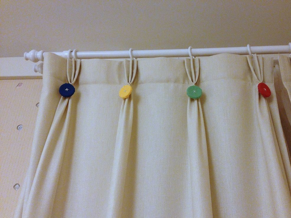 บางทีการตกแต่งผ้าม่านในเรือนเพาะชำเป็นกรณี ปุ่มสตริงสามารถอยู่ในสายการประมงหรือด้ายและแนบกับชายคาบ้าน ยิ่งมีปุ่มมากเท่าไหร่และยิ่งมีการผสมสีมากเท่าไหร่การออกแบบก็จะยิ่งสดใสมากขึ้นเท่านั้น