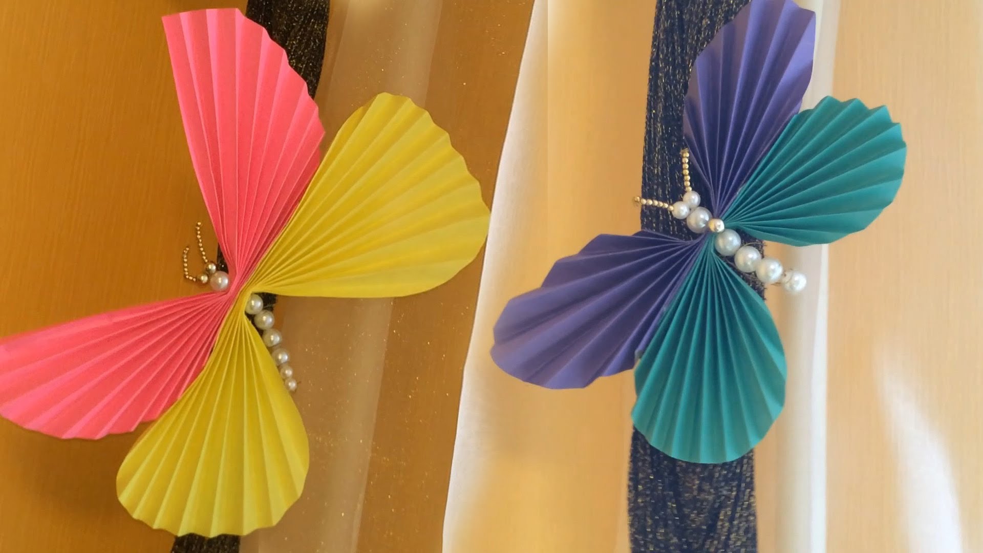 วิธีการย้อมสีนี้เป็นวิธีที่ง่ายที่สุดและถูกที่สุด สิ่งที่คุณต้องทำก็เพียงแค่ตัดรูปแบบที่แตกต่างจากกระดาษแข็งหลากสีตามรูปแบบและติดเข้ากับผ้าม่านด้วยความช่วยเหลือของหมุด พวกเขาไม่ควรมีขนาดใหญ่เพื่อไม่ให้เกิดริ้วรอยและฉีกขาด