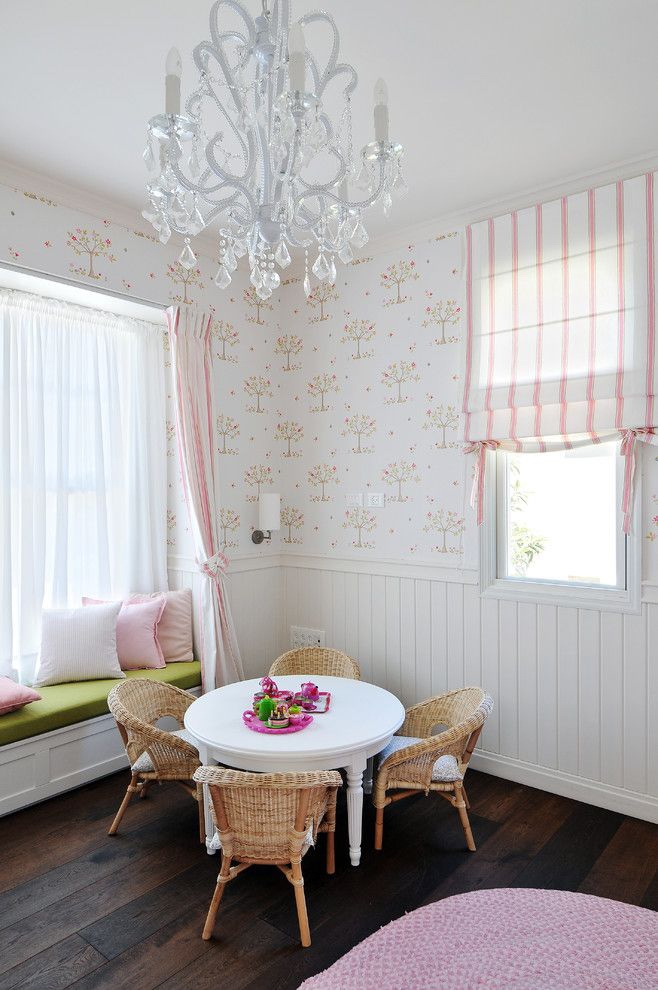 ความจริงที่ว่านี่เป็นสีที่ชอบของผู้หญิงเป็นที่รู้จักกันทั้งหมด ดังนั้นแสงสีชมพูที่ไม่เหมือนอะไรจะดูดีในเรือนเพาะชำของหญิงสาว ห้ามมิให้ใช้พวกเขาในการออกแบบเรือนเพาะชำสำหรับเด็กเพื่อไม่ให้ทำร้ายจิตใจ